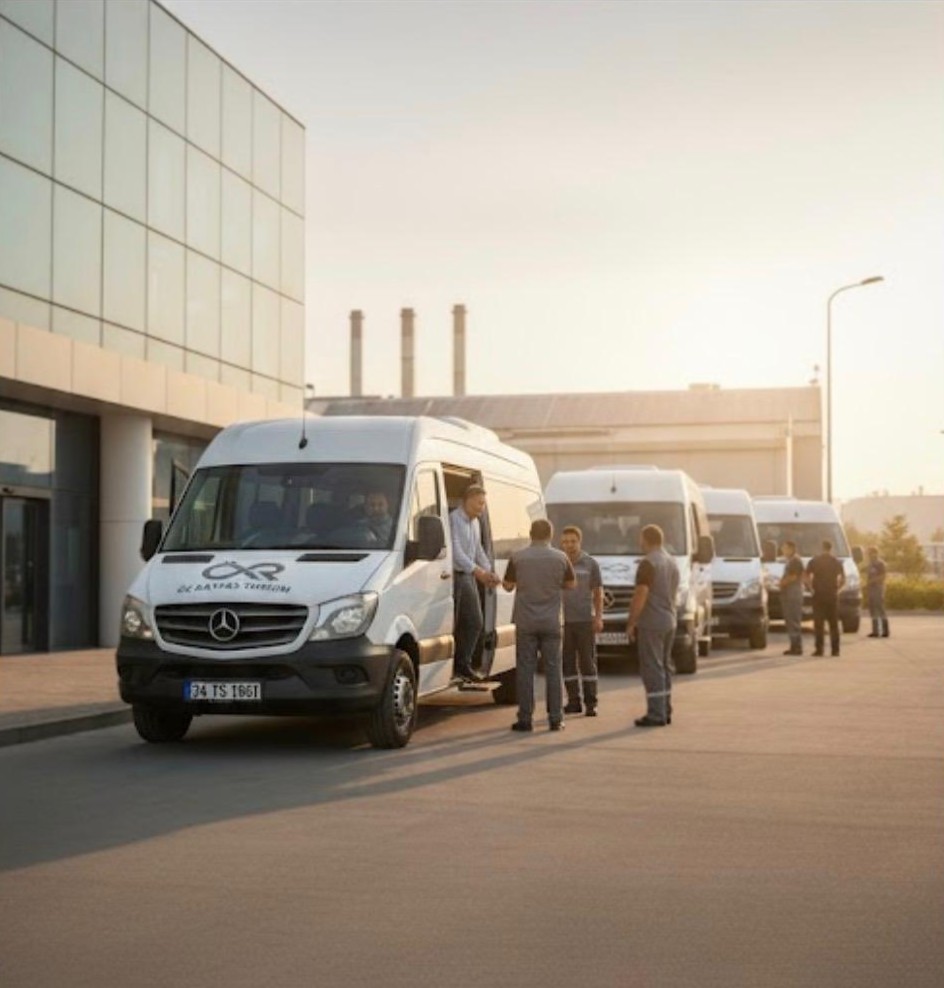 Öz Raytaş olarak, personel taşımacılığı alanında yılların verdiği deneyimle hizmet vermekteyiz. Amacımız, iş yerlerine güvenli, konforlu ve zamanında ulaşımı sağlamak; çalışanlarınızın gününe huzurlu bir başlangıç yapmasına katkıda bulunmaktır.